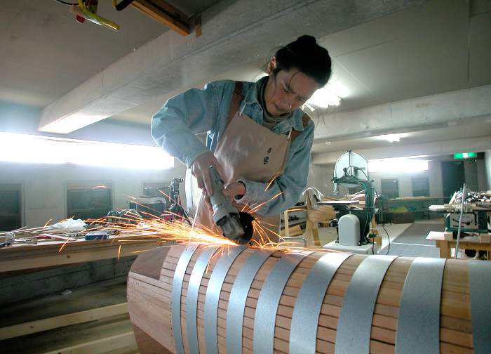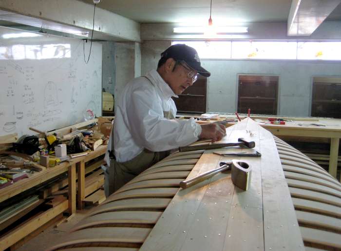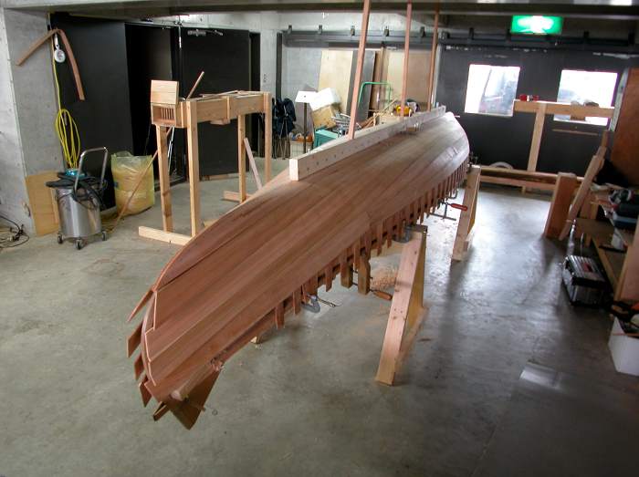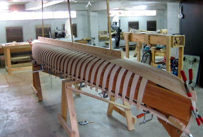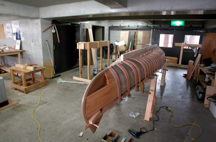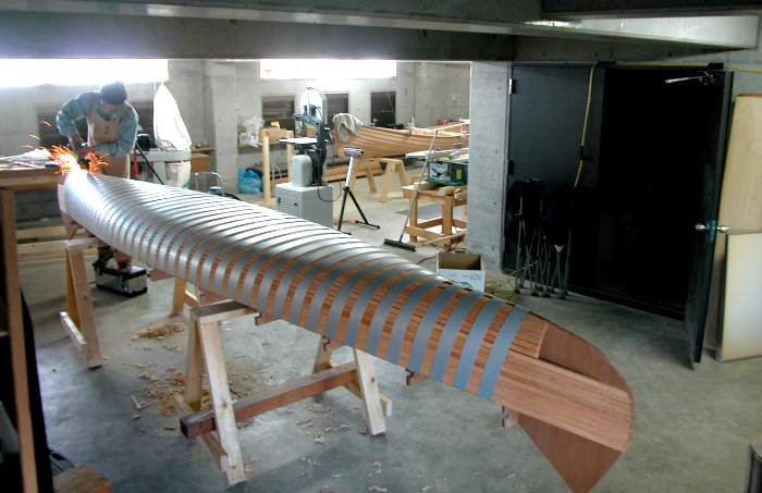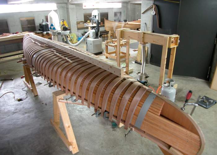 伝統的なラプストレーキ(鎧張り)技法で小型カヌーを制作します。