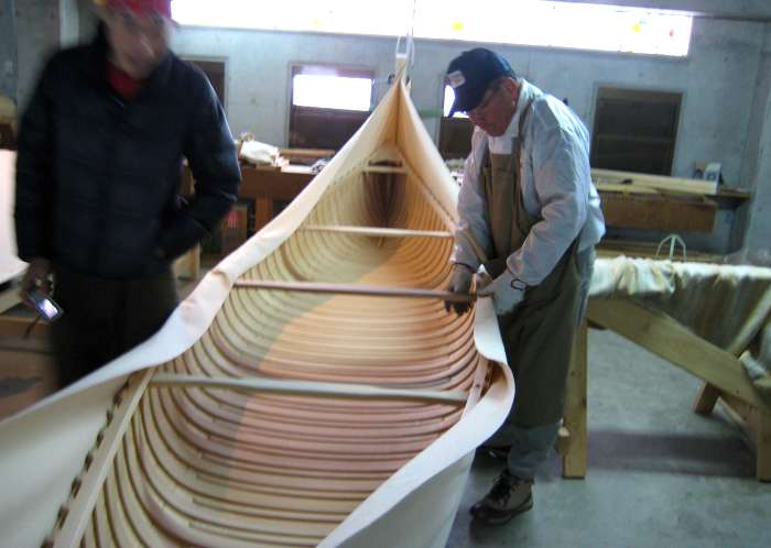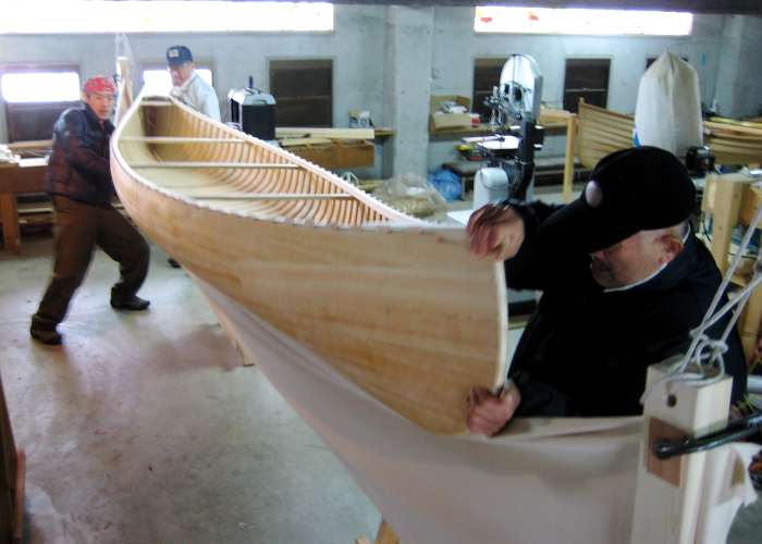 伝統的な手法でペノべコスト川周辺で使われていたカヌーのレプリカを制作します。